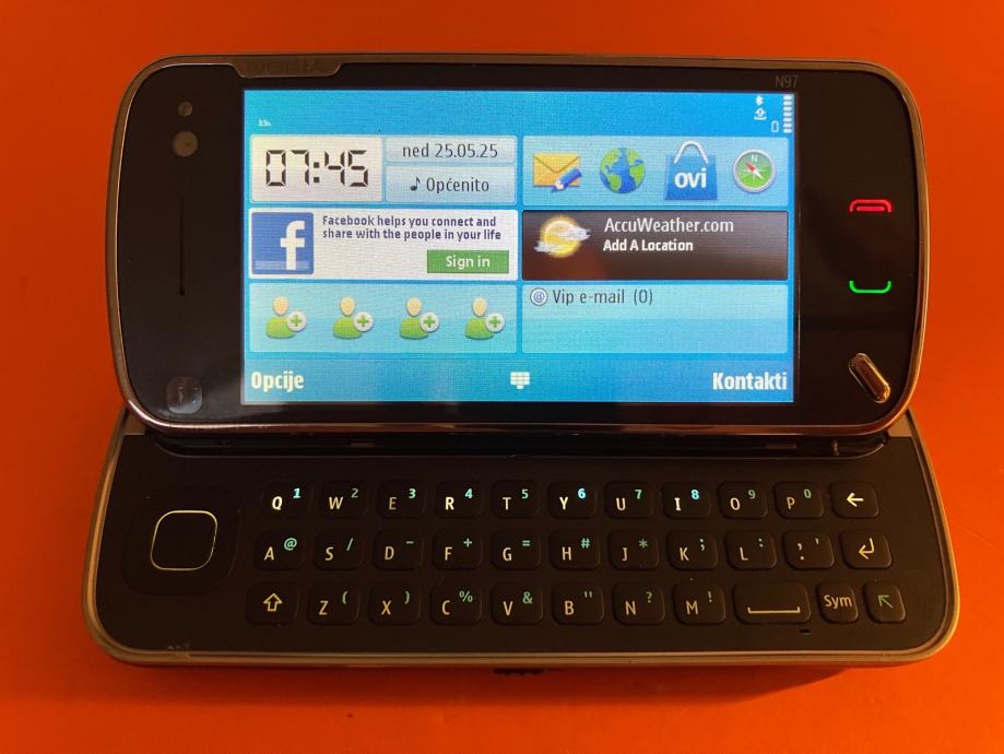 Nokia N97 Maxi mobitel i punjač, radi na sve mreže, ispravan, odlicna baterija. 20 autentičnih fotografija je u oglasu.Punjač je kompatibilan od Motorole. Cijena je 90 EUR, a troškovi slanja su dodatna 3 EUR Tiskom ili 5 EUR Poštom za unaprijed uplatu na račun ili 6 EUR za plaćanje pouzećem. Pakiram tako da je sigurno u transportu. Odgovaram na pozive, poruke putem Njuškala, SMS, Viber.