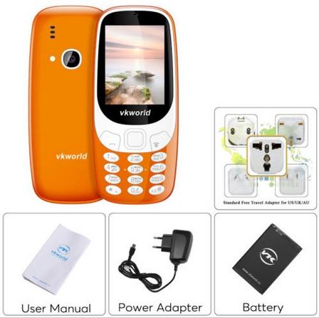 Kineska kopija legendarne Nokie 3310, sa boljom (izdignutom) tastaturom, velikom baterijom (cca tjedan dana), svjetiljkom, 2 sim kartice, turbo glasnim zvučnikom, slušanje radija bez slušalica, zmijicom, otključana za sve mreže, novo, zapakirano, losos narančasto kućište.