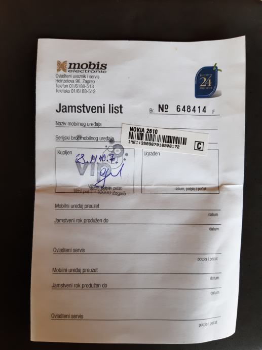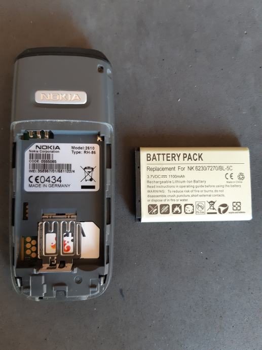 Rabljeni mobitel NOKIA, model 2610,prvi i jedini vlasnik, pogodan za sakupljače i kolekcionare ove marke, sa kabelom za punjenje, prodajem. Uređaj ima oslabljenu bateriju uslijed duljeg nekorištenja, ali je sačuvan i u ispravnom stanju.