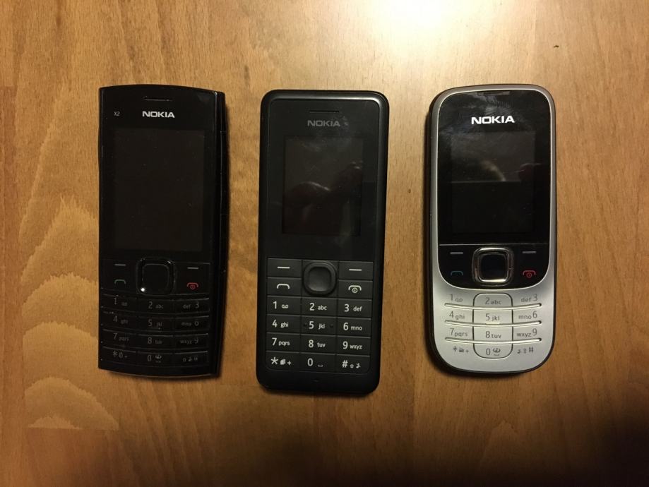 Nokia 107 dual sim sa punjačem, u odličnom stanju bez ogrebotina - cijena 100,00 kn (srednji mobitel na slici).