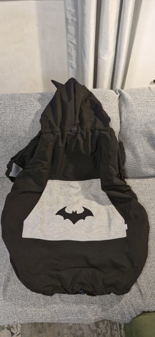 Uz nosiljku dolazi i rukom šivana pokrivalica brenda Dolisa, s prepoznatljivim i jako simpatičnim Batman motivom – savršena za hladnije dane ili zaštitu od vjetra.