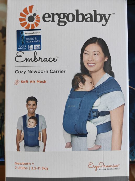 Prodajem nosiljku Ergobaby Embrace Soft Air Mesh plave boje. Nosiljka je nova, nekorištena. Izvađena iz kutije i isprobana samo. Beba nije htjela biti u tome, tako da ju nismo koristili.