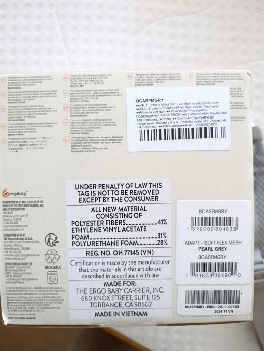 ERGOBABY Nosiljka Adapt Soft Flex Mesh biserno siva, jednom korištena, praktički nova