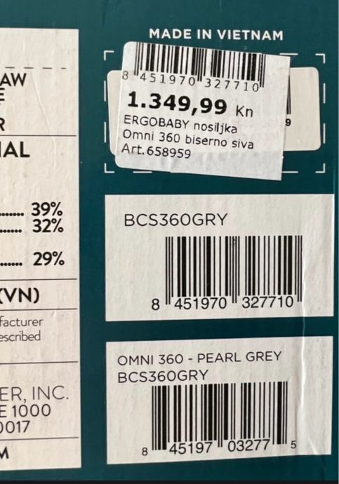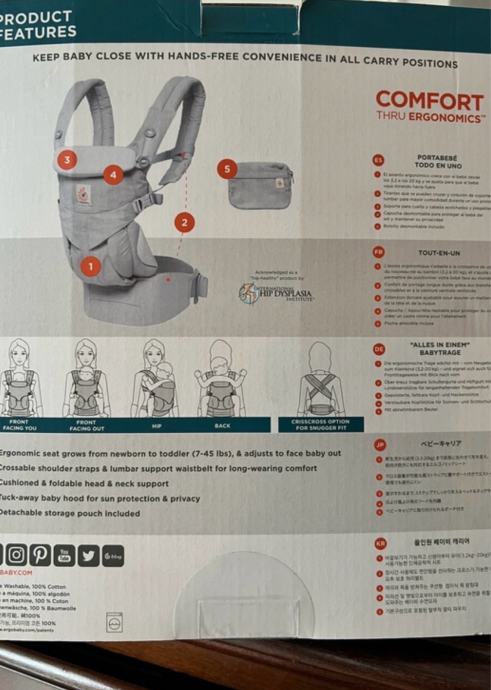 Nosiljka za novorođenče (3.2 kg) pa sve do 20 kg nosivosti. U jako dobrom stanju, nosiljka je kao nova, korištena za samo jednu bebu. Postoji mrlja koja se jedva primjeti (zadnja slika) na području gdje bude bebina glavica ali jedva je uočljiva.