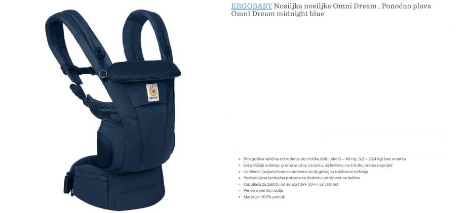 Ergobaby Omni Dream nosiljka, midnight blue