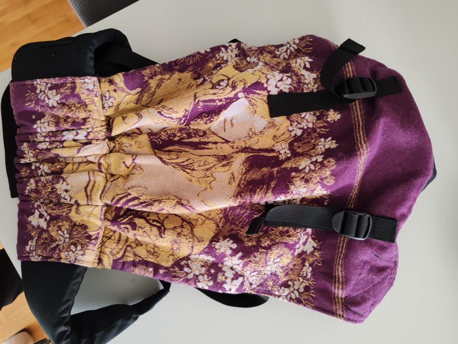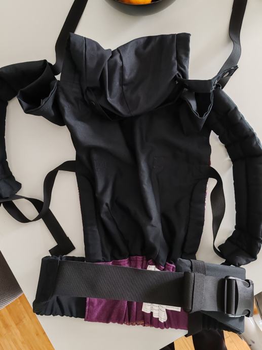 Panel u širinu sužava se čičkom sa unutarnje strane pojasa pružajući potporu od koljena do koljena kako beba raste, a u visinu zatezačima.