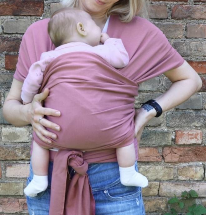 Prodajem maramu za nošenje beba sa torbicom za lakše pospremanje. Boja roza. Nije korištena uopće.
