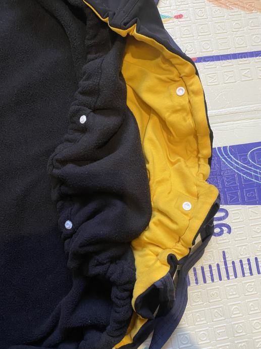 Prodajem navlaku za nosiljku za bebe u crnoj, neutralnoj boji sa unutarnjim žutim detaljima. Navlaka je u odlicnom stanju, drugi vlasnik no niti jednom ju nismo koristili. Vanjski materijal je vodo i vjetronepropusan a unutarnji je od flisa, te su slojevi spojeni drukerima pa mozete birati koliko Vam slojeva topline treba. Jednostavno se prikvači za bilo koju nosiljku vezanjem. Ima slatku kapuljačicu za bebu a sa prednje strane ima veliki praktični džep.