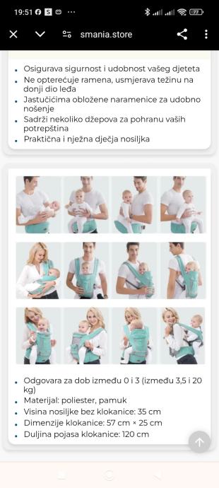 Odgovara za dob između 0 i 3 (između 3,5 i 20 kg)