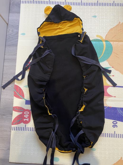 Uz nju POKLANJAM i zimsku navlaku za nosiljku koja se jednostavno pricvrscuje vezanjem, a kako je šivana od dva sloja (unutarnji je flis) mozete birati koliko slojeva tj topline vam treba jer se jednostavno odvajaju drukerima. Vanjski sloj je vodo i vjetronepropusan i ima malu kapuljaču za bebu, a sa vanjske strane veliki praktični džep.