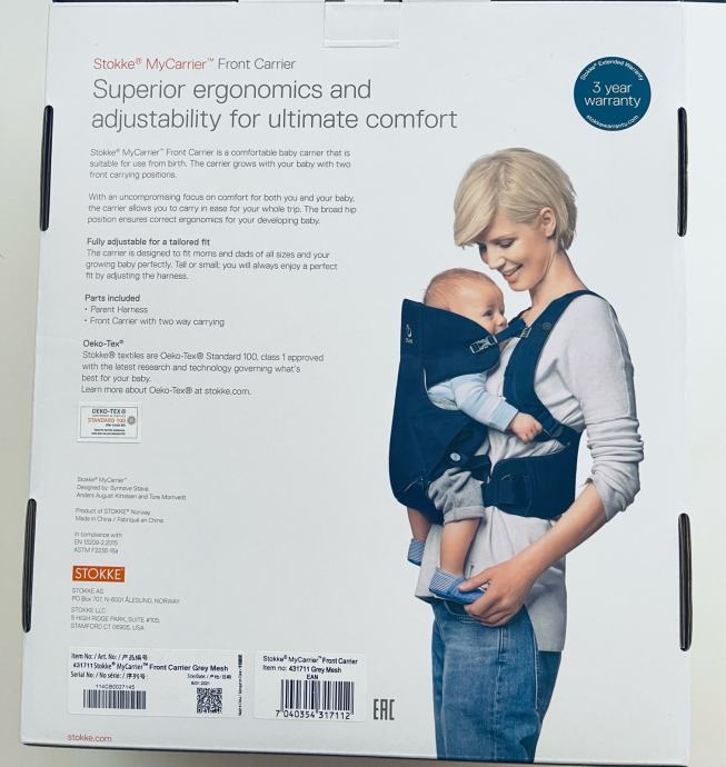 Stokke MyCarrier nosiljka za bebe, siva, kao nova