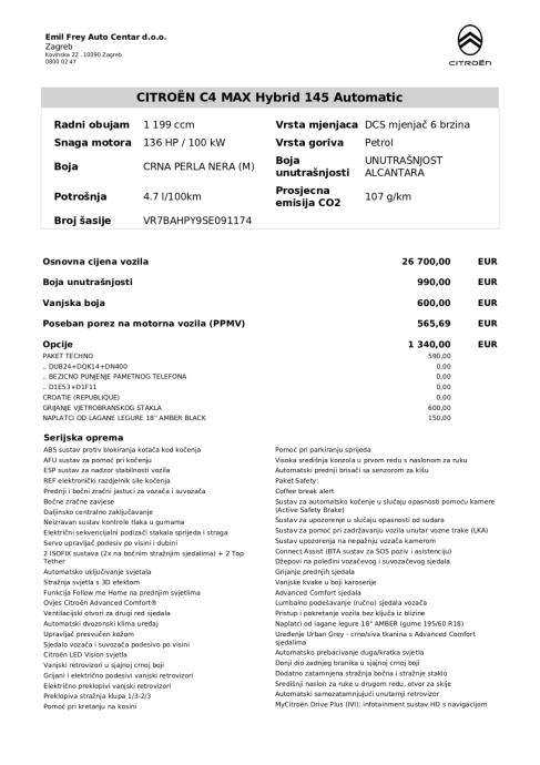 - CITROËN C4 MAX Hybrid 145 Automatic