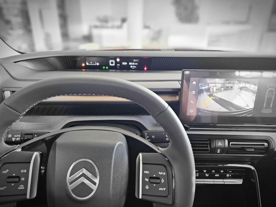 Električni podizači stražnjih stakala, Advanced Comfort sjedala Kamera za vožnju unatrag, Naslon za ruku na prednjim i stražnjim vratima od tkanine s naljepnicom, Automatsko prebacivanje duga/kratka svjetla, My Citroën Play Plus: Akustično vjetrobransko staklo - Audio sustav na 10,25" tabletu, 6 zvučnika, Visoka središnja konzola s naslonom za ruku u prvom redu (Hybrid/električni) - Digitalni radioprijemnik DAB