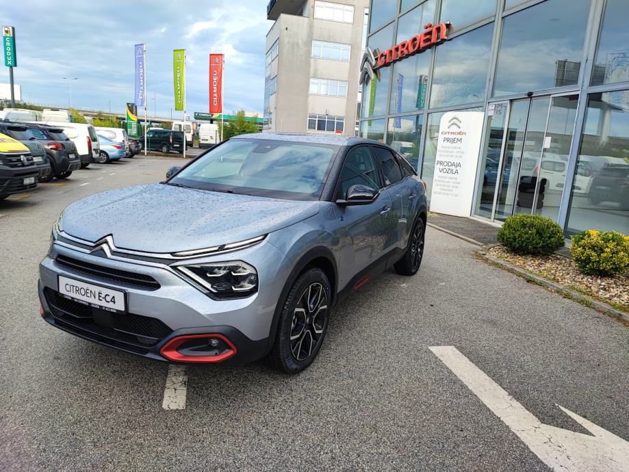 Automatski dvozonski klima uređaj, Podnica prtljažnika s 2 položaja, Upravljač presvučen kožom, Ovjes Citroën Advanced Comfort®, Digitalna instrument ploča u boji, Plavi dekor na oplatama prednjih vrata (osim uz opcije S4FL / S5FJ), 10" tablet AIO, 6 zvučnika, BlueTooth®, 3 načina vožnje (ECO/NORMAL/SPORT), 1x priključak USB (tip C) + 1x priključak USB (tip A)+ utičnica 12 V u prvom redu, Sjedalo vozača i suvozača podesivo po visini, 1x priključak USB (tip C) + 1x priključak USB (tip A) u drugom redu, Lumbalno podešavanje (ručno) sjedala vozača, Connect Play: funkcija Mirror Screen (Apple CarPlay™), Paket Safety:, Automatska električna parkirna kočnica, Coffee break alert, Automatski prednji brisači sa senzorom za kišu, Regulator/limitator brzine, Ventilacijski otvori za drugi red sjedala, Sustav za automatsko kočenje u slučaju opasnosti pomoću kamere (Active Safety Brake), Monogram plavi ë, Sustav za upozorenje u slučaju opasnosti od sudara, Color paket Anodised Blue (osim uz boju crvena Elixir), Sustav za pomoć pri zadržavanju vozila unutar vozne trake (LKA), Color paket Glossy Black (uz boju crvena Elixir), Prepoznavanje prometnih znakova za ograničenje brzine, OBC (on-board charger) pretvarač na vozilu 11 kW, 3-fazni