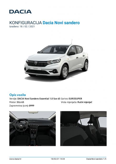 Dacia Sandero Essential 1.0 Sce 65, NOVO ISPORUKA ODMAH