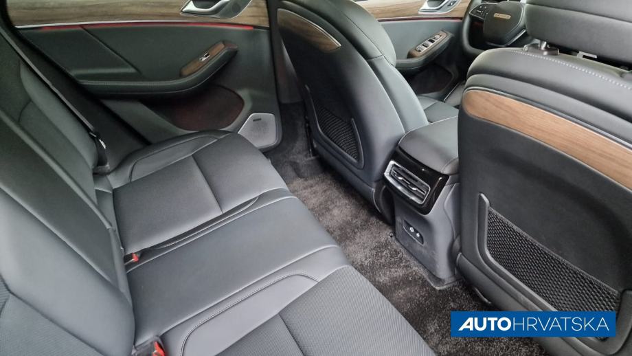 Oprema Premium 4WD, dual motor, 430 Kw. ABS + EBD sustav kočenja Bosch, Elektronski progam stabilnosti (ESP), Pomoć pri kočenju u nuždi (EBA), Pomoć pri kočenju u hitnim slučajevima (BA/BAS), Regulacija pogonskog proklizavanja (ASR) Kontrola za pomoć pri kretanju uzbrdo (HAC),Upozorenje za vozila u mrtvom kutu (BDS), Sustav autonomnog kočenja (AEB), Pomoć kod napuštanja prometne trake (RDP), Pomoć kod vožnje u prometnoj gužvi (TJA/ICA), Upozoreznje od naleta vozila straga (RCTA), Upozorenje za sigurni izlazak iz vozila (DOW), Head up display, LED kontrolna ploča 12.3 inča, Kožni interijer, Kožni volan od višenamjenskih vlakana, Tri načina vožnje (Eco, Normal, Sport), Automatski klima-uređaj sa PTC grijanjem, Zračni jastuk za vozača i suvozača, Bočni zračni jastuci, Zračne zavjese, Centralno daljinsko zaključavanje, El. grijanje i namještanje vanj. osvrt. zrcala, Grijanje prednjih sjedala sa ventilacijom i masažom, Bluetooth povezivanje telefona (Hands Free, Android, Iphone), ISOFIX prihvat za dječje sjedalice, LED adaptivna prednja svjetla, LED dnevna svjetla, LED stražnja svjetla sa dinamičnim pokazivačima smjerova, Ambijentalno osvjetljenje u 64 boje, Lakometalni naplatci crne boje 20 cola sa Pirelli gumama 255/45/20 , Navigacijski sustav, Pomoć pri parkiranju - sprijeda i straga, All round kamera 360*, Prednja sjedala el. Podesiva sa memorijom sjedala, Preklopiva stražnja sjedala, Putno računalo (Bordcomputer), MP5 uređaj 15.6 inča osljetljiv na dodir, Servo upravljač, Središnji naslon za ruke, Svjetla za maglu, Adaptivni tempomat, USB priključak sa wirelles punjenjem telefona, Panoramski krov, Pametni ključ, TPMS nadzor pritiska u gumama, maksimalna brzina ograničena na 200 km/h, CCS priključak za punjenje, AC OBC charger 3F 11 kw, V2L 3.3 kW Baterija CATL LFP 80 kWh Potrošnja 17.3 kWh/100 km WLTP 483-522 Punjenje 20-80% 30 min (100 Kw punjač) Jamstvo 4 godine ili 100.000 km na vozilo 8 godina ili 160.000 km na bateriju do 70% kapaciteta