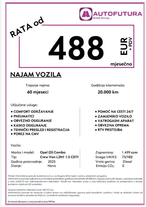 Cijena se odnosi na gotovinsko / virmansko plaćanje te na financiranje putem autokredita / leasinga, te ne obuhvaća plaćanje putem potrošačkih kredita.