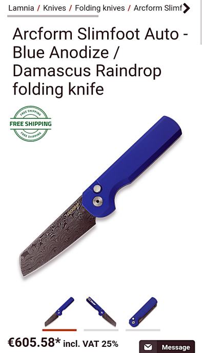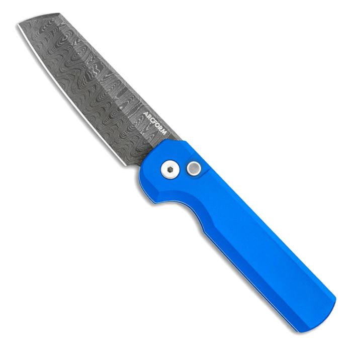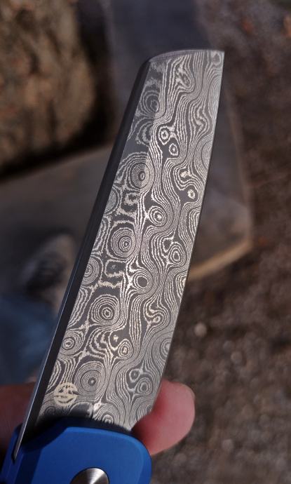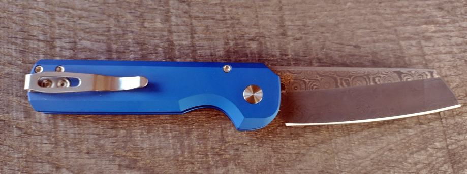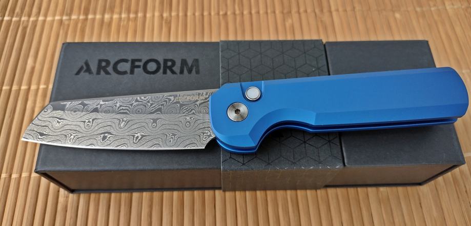 Nož je kupljen 10/2024. stanje NOVO - izvađen iz kutije, par puta otvoren, isproban na listu papira i vraćen u kutiju, dakle 10/10. Nož je automatic OTS, napravljen u Pro-Techu, made in the USA. Vrhunska izrada i kvaliteta. Čelik je Chad Nichols Raindrop Damascus, drška plavo anodizirani 6061-T6 aluminij, gumb za aktivaciju od sedefa (mother of pearl inlay). Discontinued.