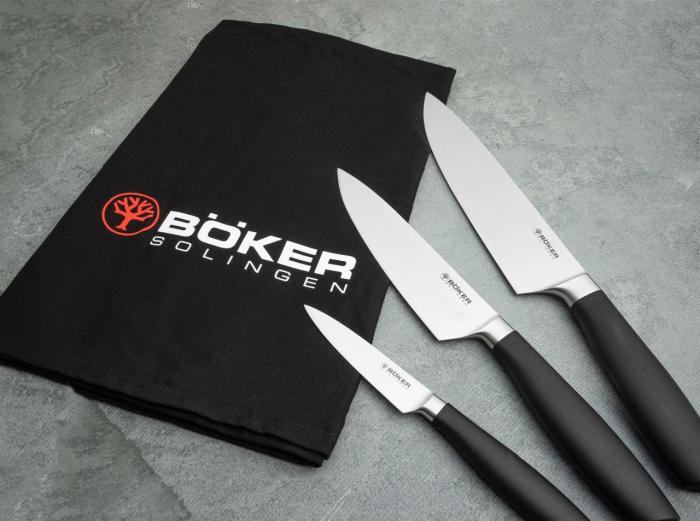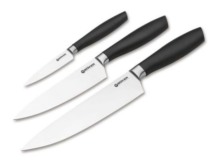 Böker Core Professional Trio set kuhinjskih noževa sastoji se od velikog kuhinjskog noža, manjeg kuhinjskog noža te malog noža.