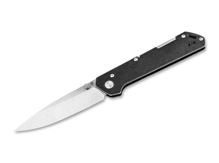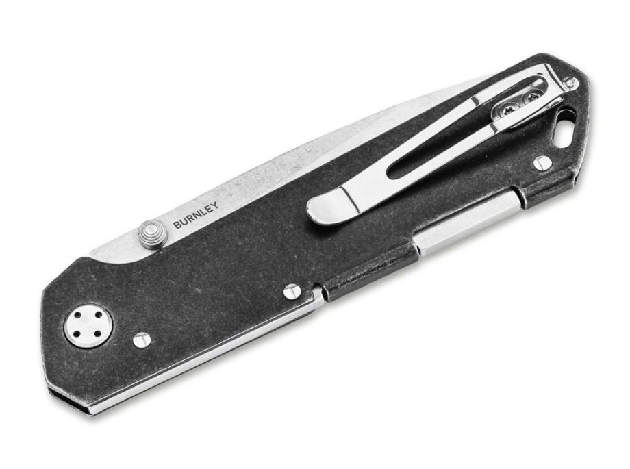 Drop point oštrica izrađena je od praškasto metalurškog CPM MagnaCut čelika (61–62 HRC) sa satin završnom obradom, što donosi izvrsnu stabilnost, rezne performanse i dugotrajno zadržavanje oštrine, uz vrlo visoku otpornost na koroziju. Otvaranje ide intuitivno preko pina za palac, dok backlock brava pouzdano zaključava oštricu. Jednodijelna drška od nehrđajućeg čelika, izrađena karakterističnom “bifold” metodom, nožu daje prepoznatljiv izgled i čvrstinu, a tip-up džepni klip, rupa za vezicu i prepoznatljiv Burnley stil zaokružuju paket. Nož je ručno izrađen u Böker manufakturi u Njemačkoj, što dodatno naglašava pažnju prema detaljima i kvaliteti izrade.