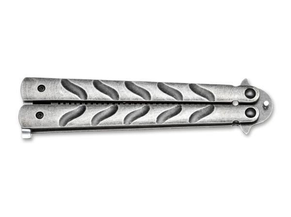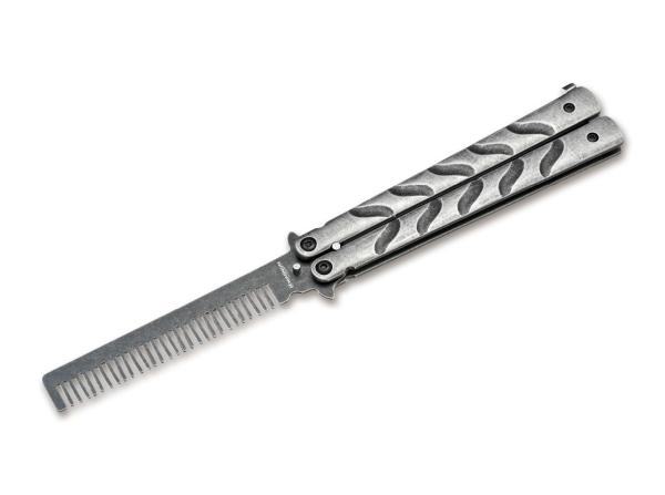 Böker Magnum balisong češalj je duhovito osvježenje na tržištu noževa. Ukoliko želite balisong odnosno leptir nož, a nije vam potrebna oštrina već funkcionalni češalj, ovo je proizvod za vas. Omogućuje sve radnje i vježbu kao i kalsični leptir nož, bez bojazni od ozljede ili problema oko nošenja na javnom mjestu. Böker Magnum balisong češalj je u potpunosti izrađen iz nehrđajućeg čelika.