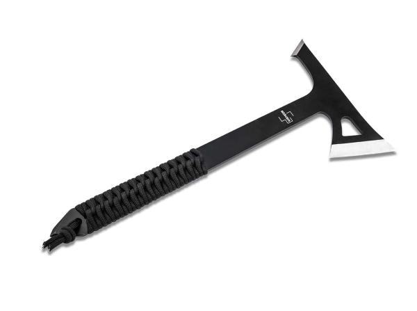 Böker Plus Mohican tomahawk za bacanje (3 komada) namijenjen je i iskusnima i početnicima. U potpunosti izrađen iz 3Cr13 nehrđajućeg čelika, s crnim finišem te drškom omotanom 550 paracordom. Temelji se na tradicionalnom tomahawku američkih Indijanaca. Isporučuje se s futrolom i metom.