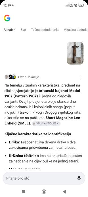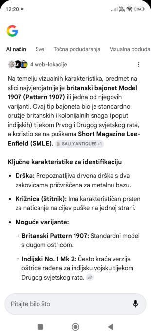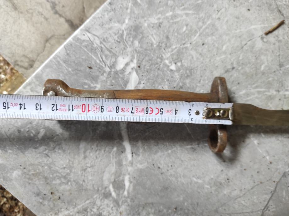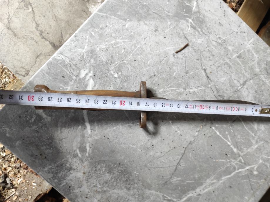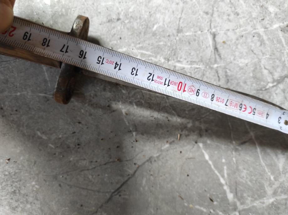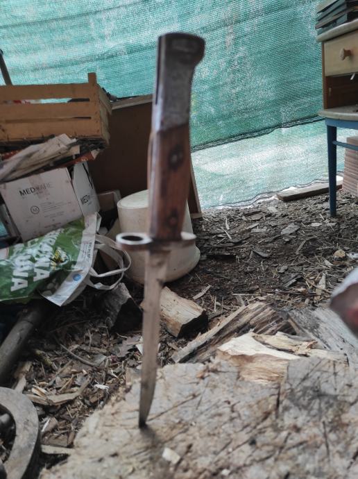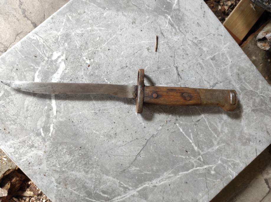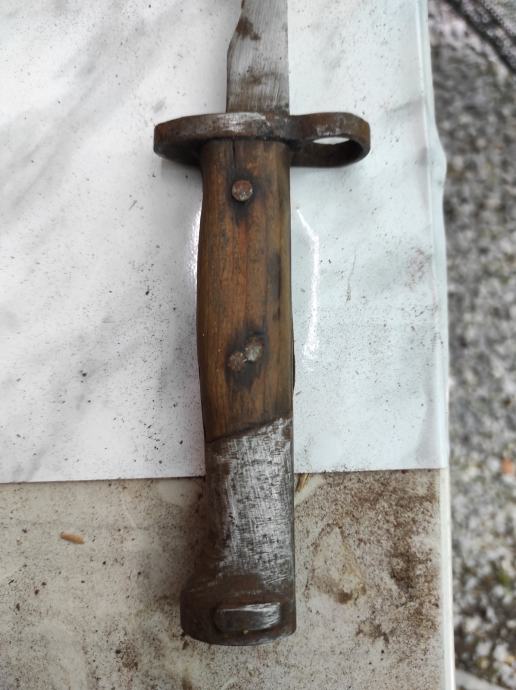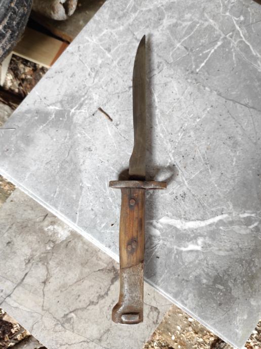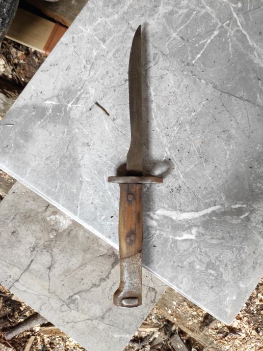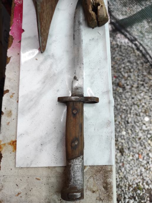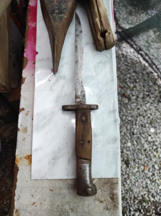 Ovu bajunetu sam našao kada sam kupio kucu na tavanu .Neznam puno o istoj,ali umjetna inteligencija mi kaze da je po svemu sudeći vrijedna( ima u slikama opis) navodno Britanski BAJUNET.Za sve informacije nazovite na broj telefona 097-6601365 ili pošaljite upit na Viber ili Njuskalo, a Šaljem Poštom ili Tiskom ili u dogovoru sa kupcem, stanje dobro.Dugacka je oštrica 16 cm i drska 14 cm ,ukupno 30 centimetara.Vidi slike!!