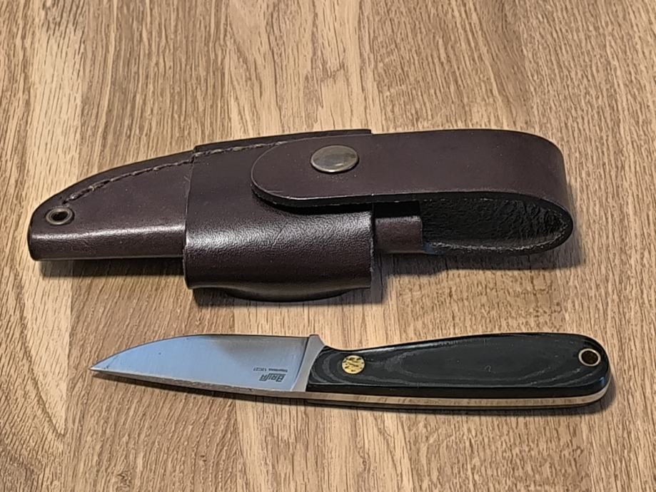 Knife type:Fixed bladeSteel type:Stainless steelBlade material:Sandvik 12C27Handle material:MicartaHandle Color:BlackSheath:LeatherOverall length:16 cmBlade length:7 cmBlade length category:7,00 - 7,99 cmBlade thickness:3,2 mmBlade shape:Drop PointBlade finish:SatinBlade grind:FlatCountry of origin:Finland