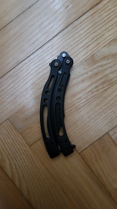 Prodajem leptir noz zakrivljene ostrice. Odlican za zabavu i trikove ili za dio kolekcije. (MOLIM VAS DA AKO KUPUJETE, A NISTE ISKUSNI, KUPITE I NOZ ZA VJEZBU JER MOZE DOCI DO OZBILJNIH OZLJEDA) Ostrica je napravljenka od kvalitetnog celika, a drska je od metala sto osigutava dugotrajnost noza.