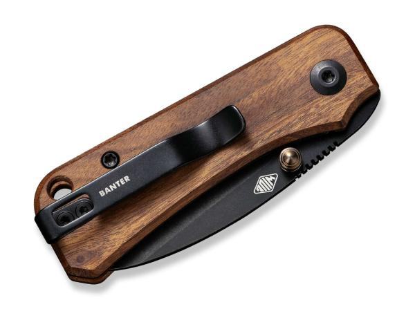 Civivi Baby Banter Cuibourtia preklopni nož je kompaktan preklopni nož, sječiva iz Nitro-V čelika i obloge drške iz Cuibourtia drveta. Kočnica je linerlock tipa, a kvačicu za džep moguće je postaviti s lijeve ili desne strane noža. Civivi Baby Banter Cuibourtia preklopni nož je opremljen rupom za konopac.