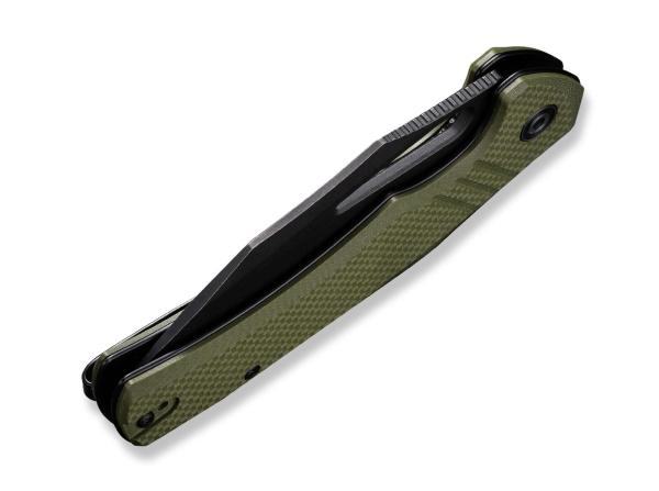 CIVIVI BullTusk G10 OD Green preklopni nož je svakodnevni nož izuzetno robusne oštrice iz odličnog švedskog nehrđajućeg 14C28N čelika. Otvaranje je brzo i lako, zahvaljujući kugličnim ležajevima i flipper ispustu. Kočnica je liner lock tipa. Obloge drške su iz G10 i orebrene su za maksimalno siguran hvat. CIVIVI BullTusk G10 OD Green preklopni nož je opremljen kvačicom za džep koju je moguće postaviti s lijeve ili desne strane noža (tip-up r/l).