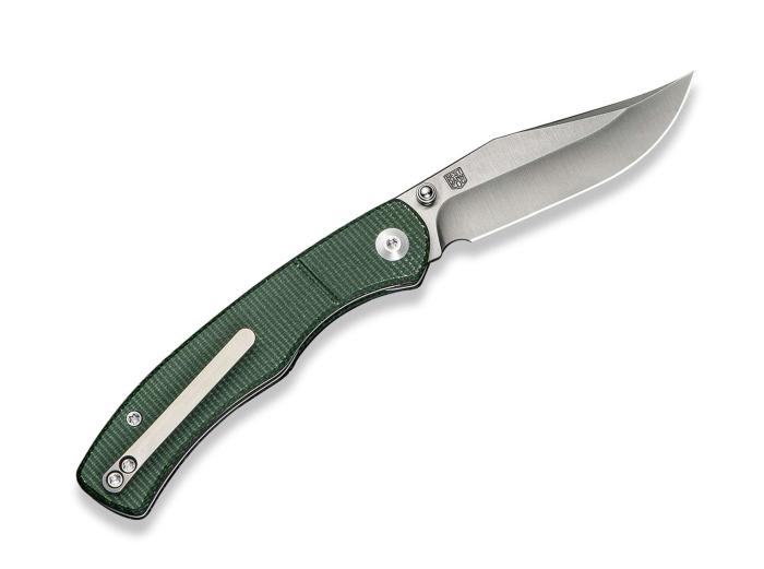 Drška izrađena od zelene Micarta tkanine pruža odličan hvat i prirodan osjećaj u ruci, čak i u mokrim uvjetima. Dodatna fleksibilnost dolazi u obliku reverzibilne tip-up džepne kvačice, što omogućuje udobno nošenje u džepu za desnoruke i ljevoruke korisnike.