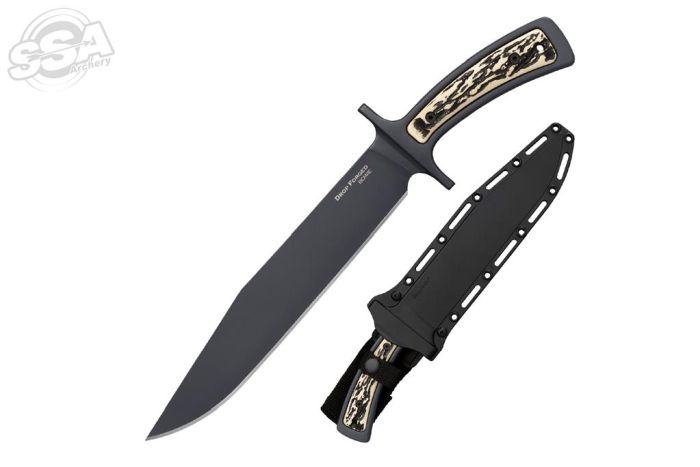 Cold Steel Drop Forged Bowie je fiksni nož izrađen iz jednog komada 52100 ugljičnog čelika, uz zaštitni premaz. Bez suvišnih dodataka i detalja, ovo je nož za prirodu, divljinu, kampiranje i taktičku primjenu. U kompletu se isporučuju i Sexure-Ex korice crne boje.