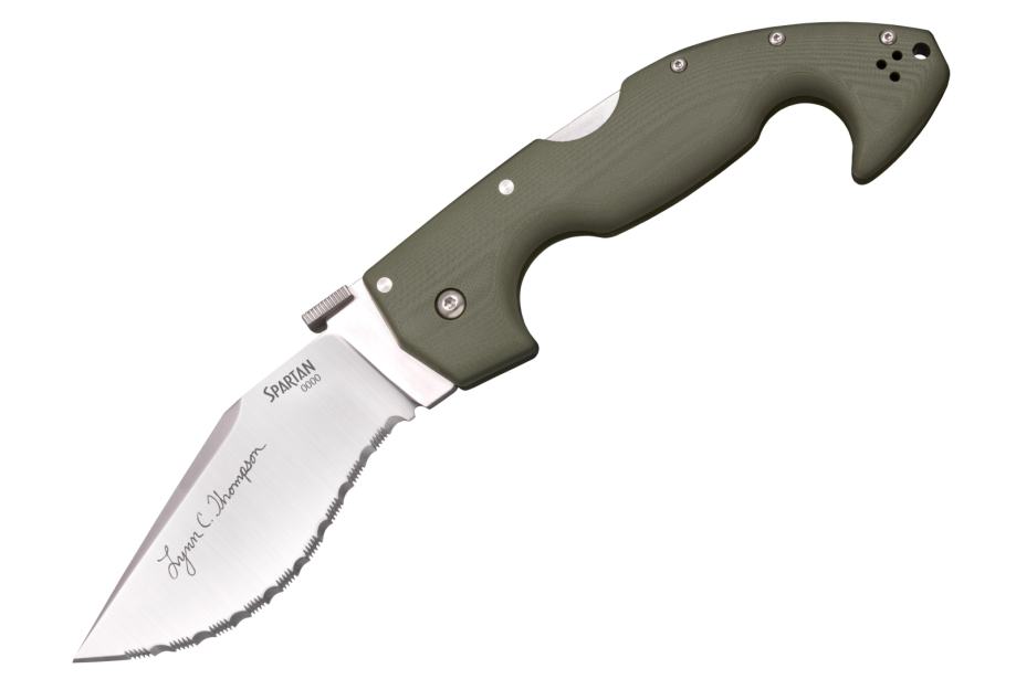 Spartan s potpisom Cold Steelovog predsjednika Lynn Thompsona na prednjoj strani oštrice i serijskim brojem autentičnosti.