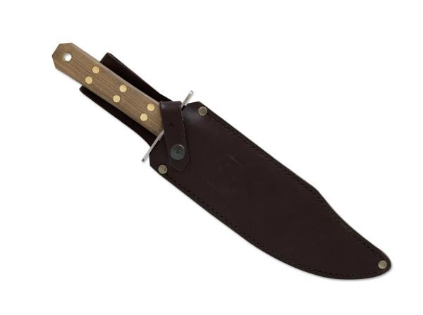 Condor Undertaker Bowie fiksni nož impresionira svojom veličinom, a posebno upečatljivim clip point Bowie vrhom. Sječivo je iz ugljičnog 1075 čelika i lako se oštri. Obloge drške su iz orahovog drveta. Rezultat je tradicionalni bowie nož Divljeg zapada. Condor Undertaker Bowie fiksni nož se isporučuje s ručno rađenim kožnim koricama.