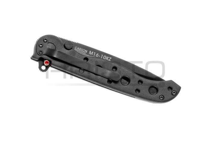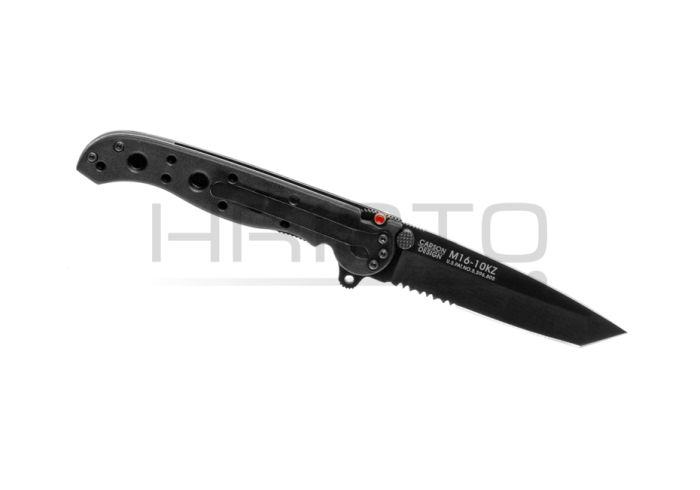The M16®-10KZ features a dual hollow grind Tanto-style blade with Combined Razor-Sharp and Triple-Point™ Serrated edges similar to our "Big Dog" M16 models. The result is maximum blade strength and ability to saw through cord, webbing, nets or vegetation quickly. It has a black EDP blade, black frame and hardware for a non-flective tactical look.