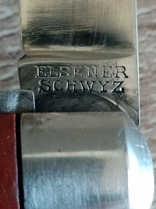 2. ELSENER -ŠVICARSKA , - Vojni časnički-oficirski nož,proizvodnja između 1948 i 1955 , a rađen bez ukucane godine proizvodnje , jer je izrađen kao reklamni nož .Oštrica je od nehrđajučeg čelika , u odličnom stanju , nož je rabljen ali je sačuvan .