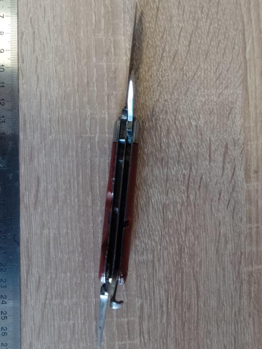 1. ELSENER -ŠVICARSKA , - Vojni časnički-oficirski nož,proizvodnja 1929 god , god je ukucana na oštrici pa se tako zna godina proizvodnje .Nož je rabljen ispravan , naoštren, ima sve funkcije, vidi se na rukohvatu da je korišten , sve je na njemu original 110 EU