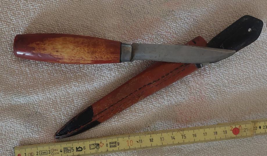Drvena drška bez oštećenja, original futrola. Nož je u dobrom stanju, potrebno lagano čišćenje, oštar.Stanje predmeta je identično kao na slikama.