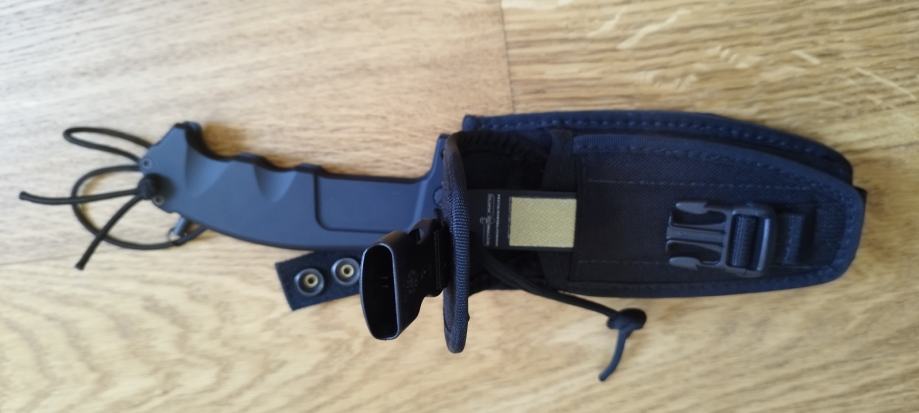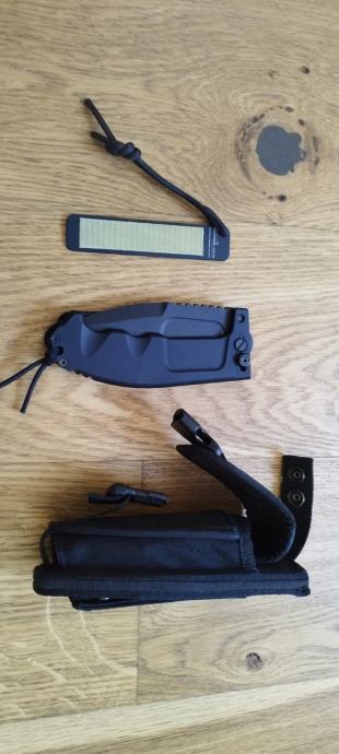 Uz nož dolazi i futrola dizajnirana za nošenje kako sklopljenog noža, tako i noža u "fiksnom" tj. otvorenom obliku. U futroli se nalazi i originalni dijamantni oštrač (također nikada upotrijebljen koji zasebno košta 25 eura)