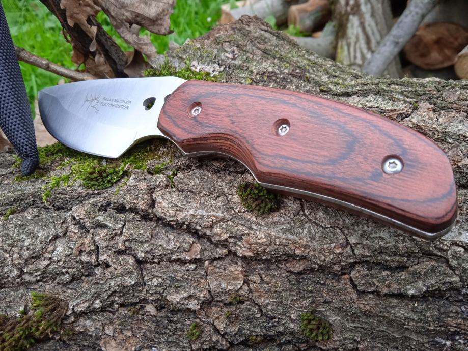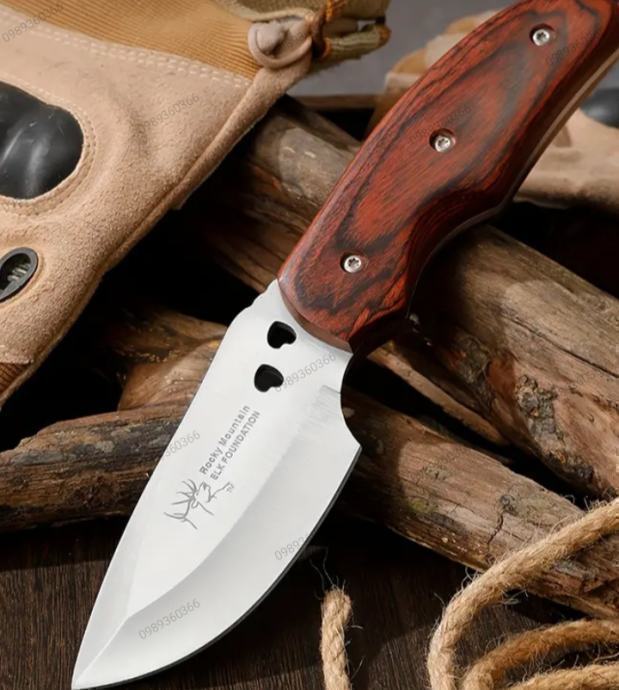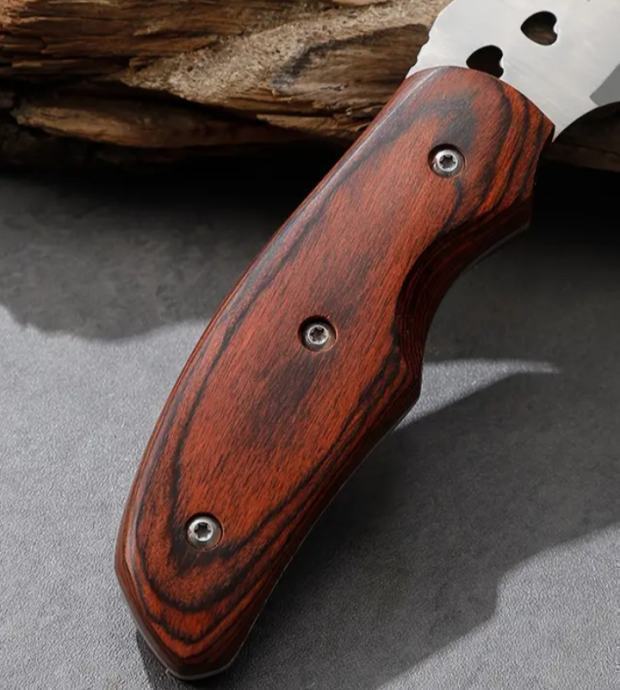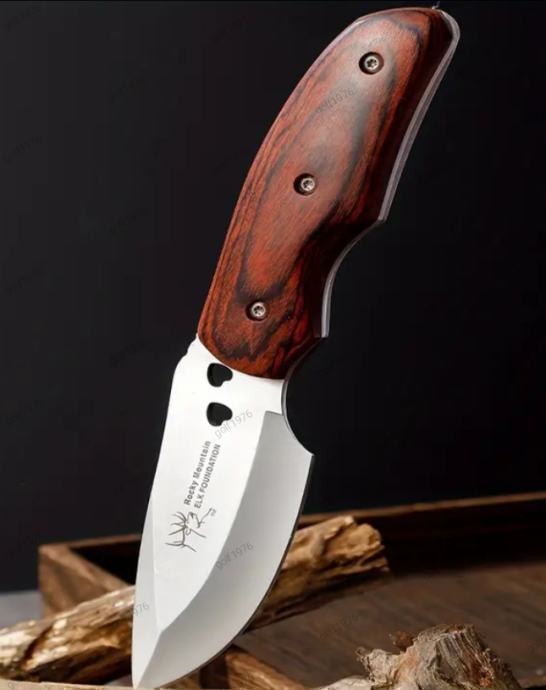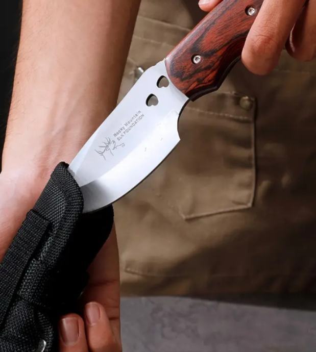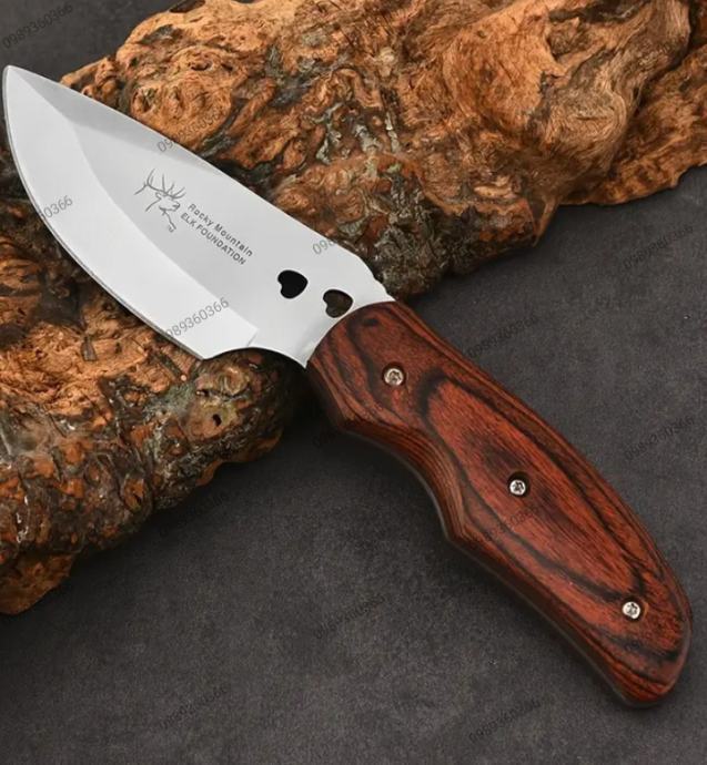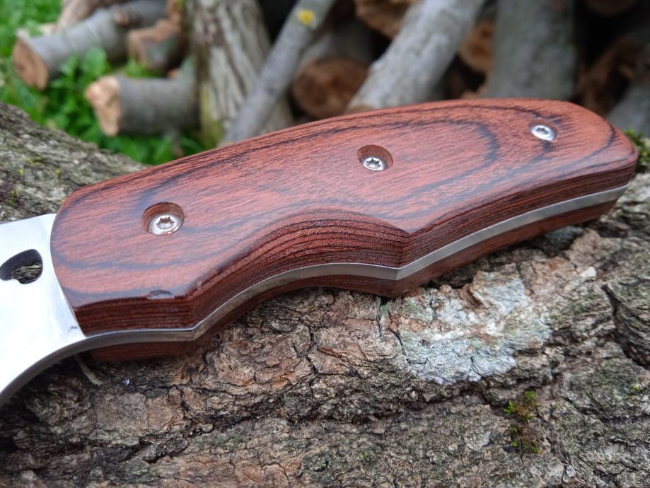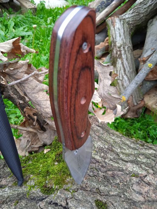 Nož je sa fiksnom oštricom i drvenom drškom.