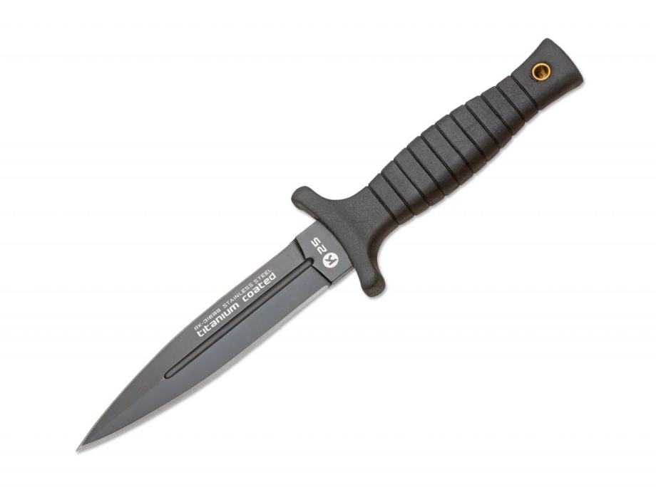Klasični vojni bodež koji se može koristiti i kao nož za čizmu (boot knife). Oštrica od čelika 7Cr17MoV ima crni taktički premaz, a gumena drška pruža čvrst stisak. Dolazi s najlonskom futrolom.