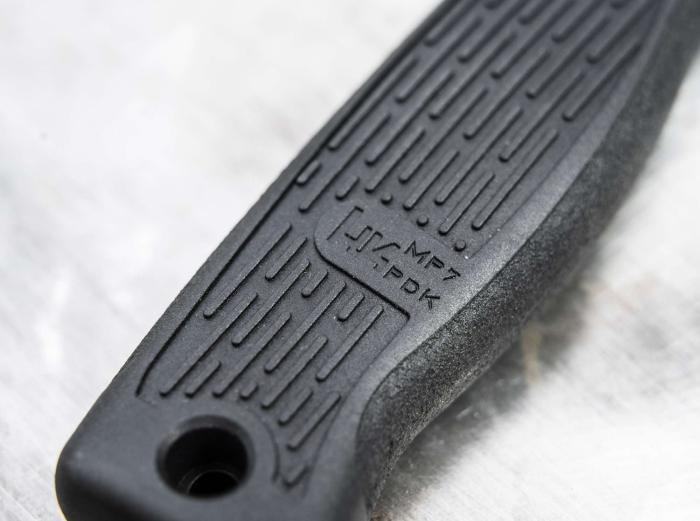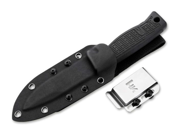 Heckler & Koch MP7 Personal Duty Knife spada u vojne noževe. Shodno namjeni, odličan je za radove na terenu, a poslužit će i u taktičke svrhe. Nazvan po odličnom Hecker & Koch MP7 PDW automatu, kompaktnih je dimenzija i male mase, ali svestran i univerzalne primjene. Sječivo je iz švedskog nehrđajućeg 14C28 čelika. Debljina sječiva od 4,3mm daje izuzetnu čvrstoću,. dok zaštitni sloj u crnoj boji dodatno štiti ionako nehrđajući čelik te smanjuje odbljesak. 14C28 se lako oštri i postiže vrlo visoku oštrinu. Nož je full tang konstrukcije. Drška je iz polimera ojačnog staklenim vlaknima. Heckler & Koch MP7 Personal Duty Knife se isporučuje s Kydex koricama i kvačicom za pojas. Korice je moguće nositi za pojasom preko priloženog prihvata, ili na opremi putem MOLLE kompatibilne metalne kvačice.