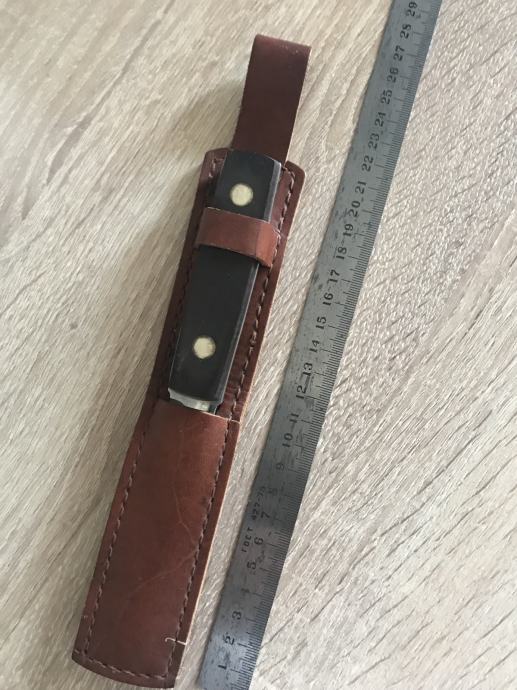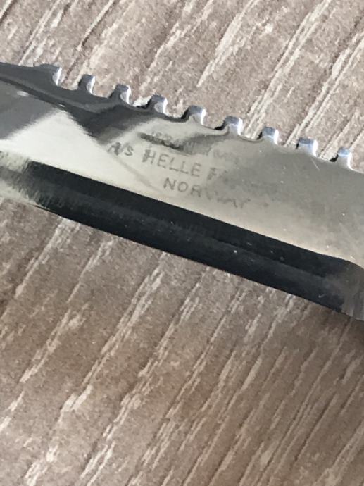 HELLE № 40, lovačko - ribarski nož, proizvodnja od 1963 do 1977 god, oštrica čelik , rađen za američko tržište za firmu " Lauffer". Serije su bila male i ovo je jedan od kolekcionarskih primjeraka , jer se ta serije prestala raditi 1977 g. Jako malo rabljen u savršenom je stanju , nema tragova korištenja na oštrici niti rukohvatu noža . Tvornički naoštren .Ima original kožnu futrolu u odličnom stanju . Skandinavski dizajn noža sa neobično rađenim rukohvatom , oštricom i futrolom .