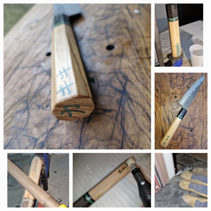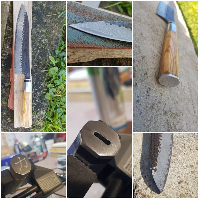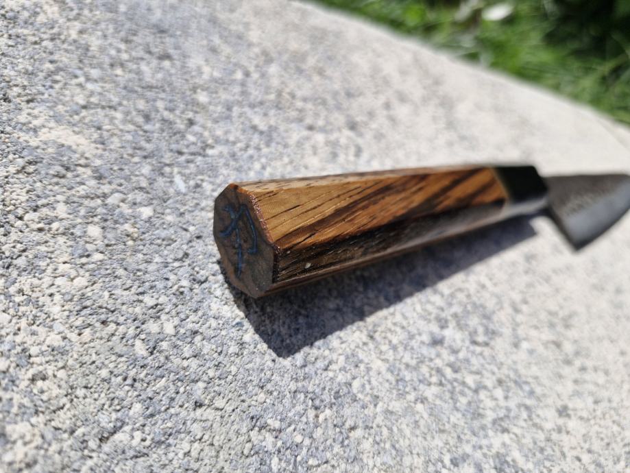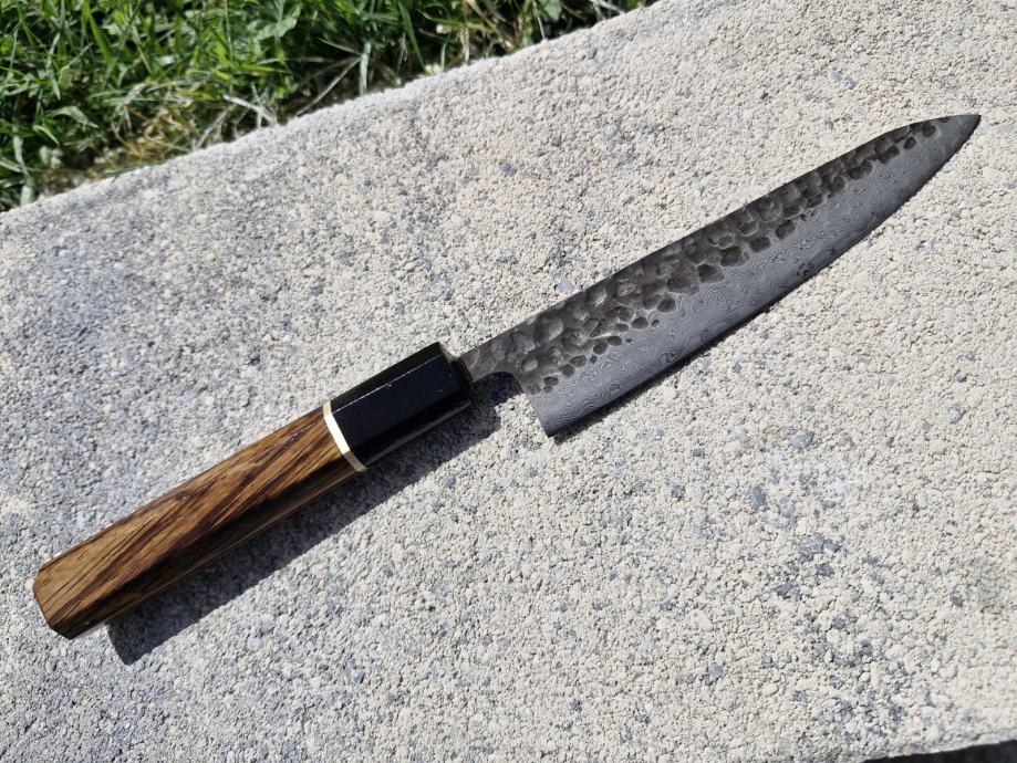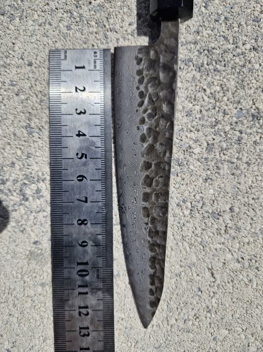 Prodajem japanski utility petty nož, ručno kovan 67 slojni čelik damask iz Japana,drška orah,ebanovina i aluminij, novi, nekorišten.