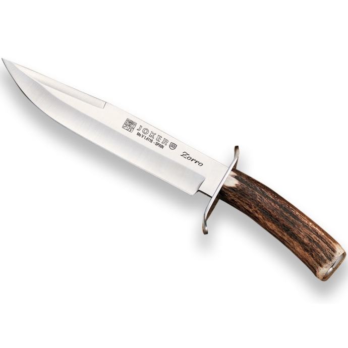 Joker nož s drškom od jelenskog roga Joker Zorro CC35 Outdoor je fiksni nož vrhunski nož sa nerđajućom oštricom. Dužina oštrice je 20,5 cm. Samo sečivo je izrađeno od nerđajućeg čelika s molibden vanadijumom. Ovaj nož odličan je za sve lovce, kampere i ostale koji su u potrazi za vrhunskom outdoor opremom.