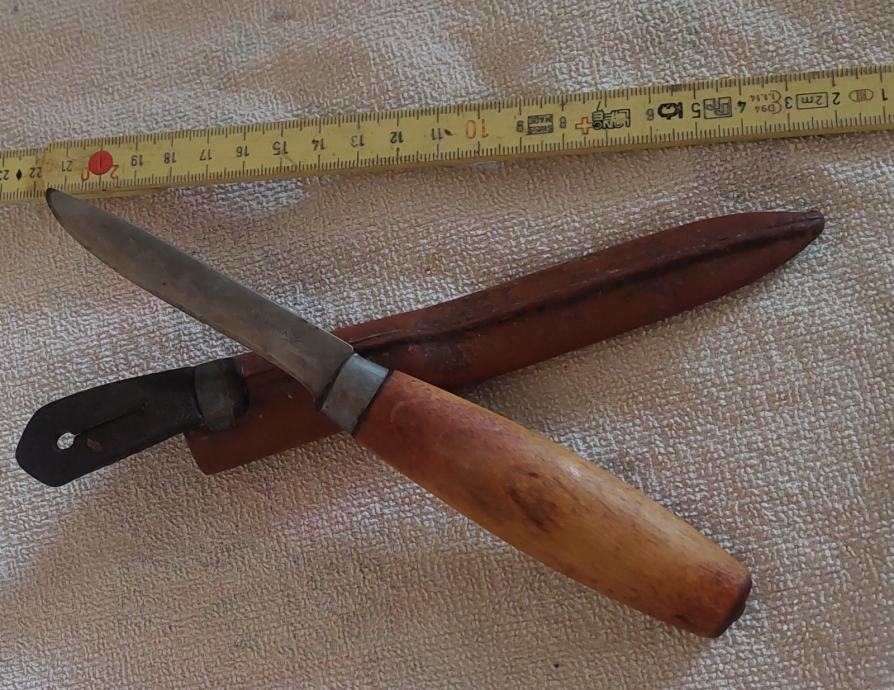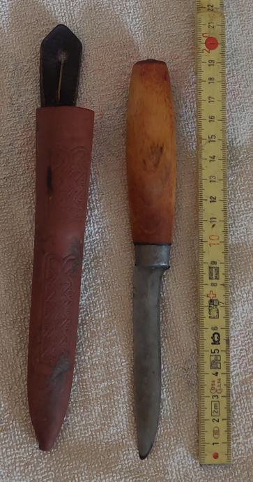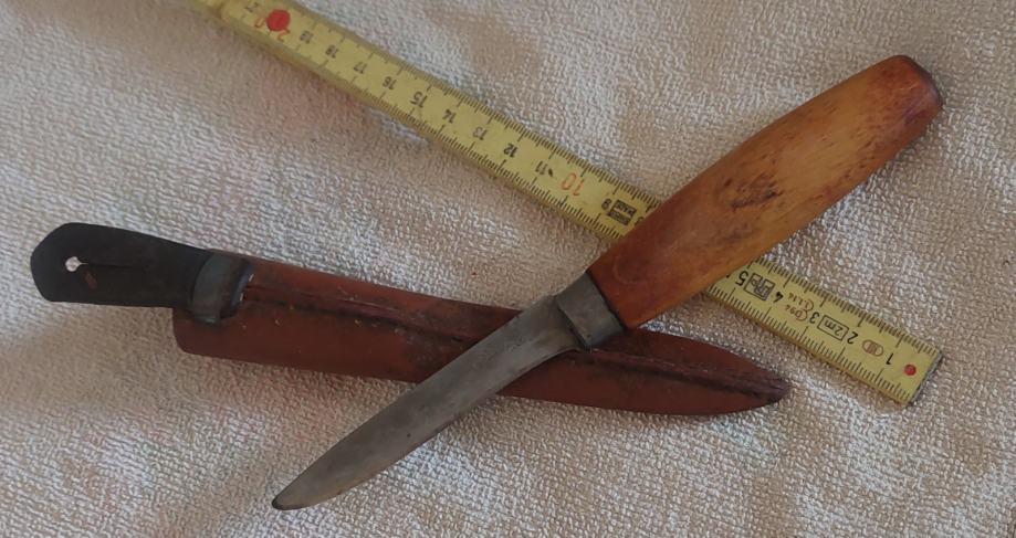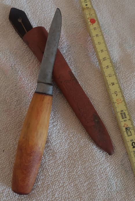 Nož je dužine 19cm, oštrica je 9cm. Drvena drška bez oštećenja, originalna futrola. Poznati Švedski proizvođač Noževa, K.J. Eriksson.
