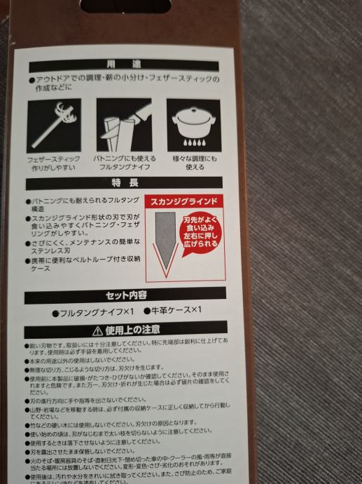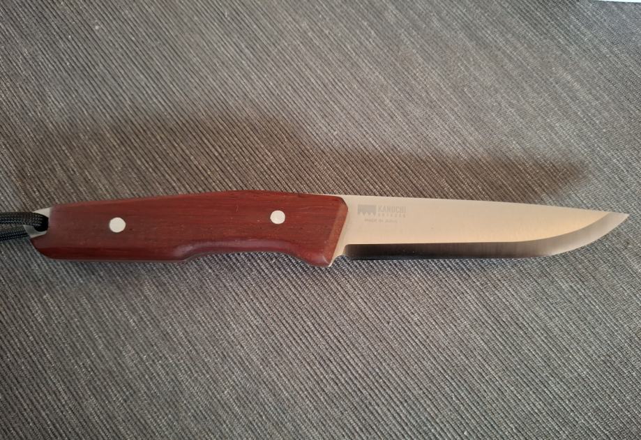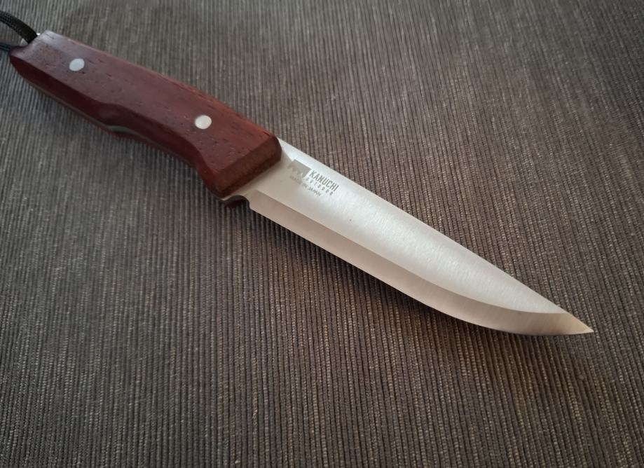 Nož je nov i kupljen prije mjesec dana u Tokiju. Izvrsna Japanska kvaliteta. Skandi geometrija bez sekundarnog kuta, iznimno oštar. Čelik je stainless 420HC.