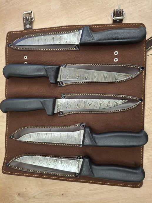 5 Noževa od Damasca,ručni rad, kovani noževi,futrola za nošenje od prave kože