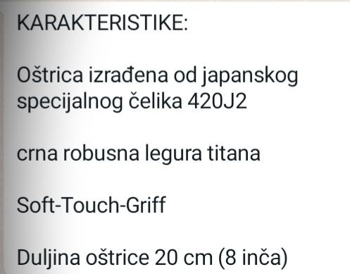 - duljina oštrice 20 cm